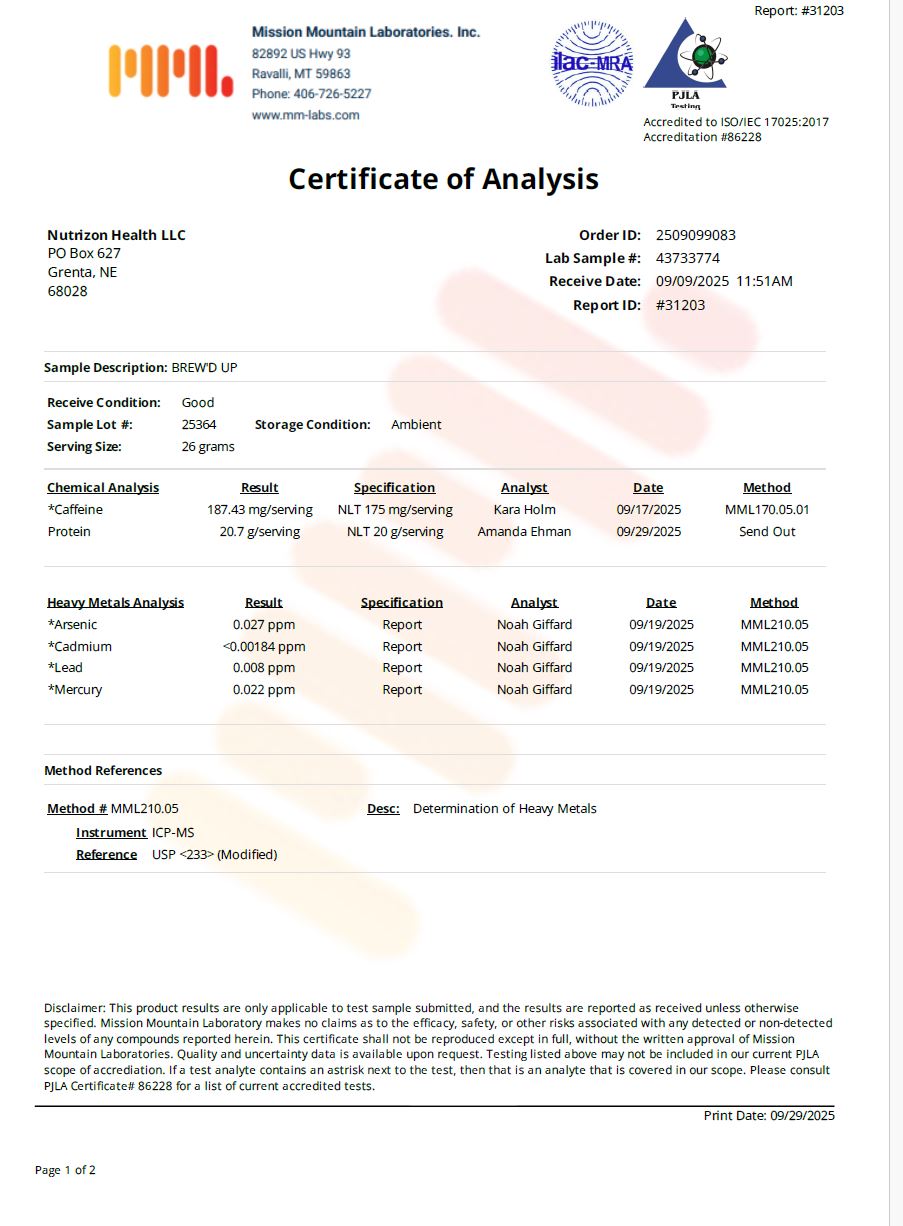 Mix 1 scoop of BREW'D UP with 6-8oz of cold water, milk or other liquid.