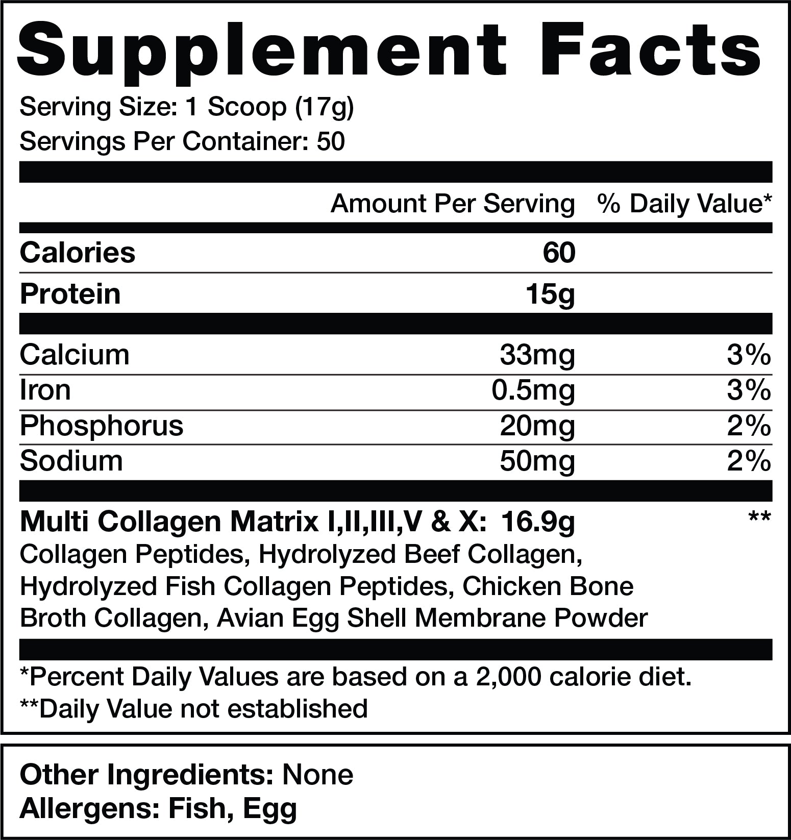 This unflavored multi-collagen complex delivers five of the most essential collagen types—Types I, II, III, V, and X—from natural sources including bovine, wild fish, chicken, and eggshell membrane. It mixes effortlessly into coffee, smoothies, or any drink of your choice.